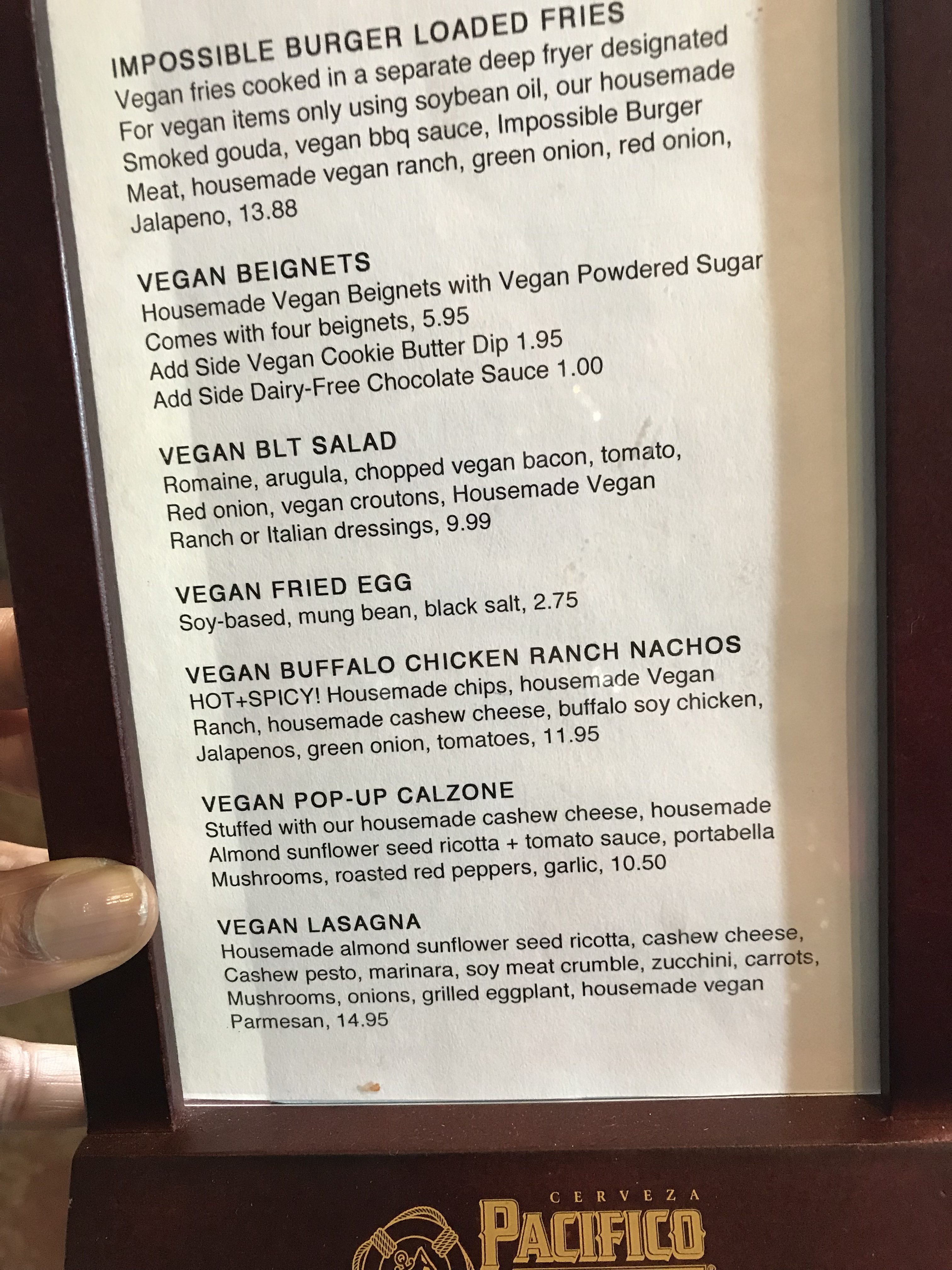The Loaded Fries were cooked in a separate deep fryer designated for vegan items only using soybean oil, topped with their house made cashew smoked Gouda, vegan bbq sauce(was delish and made the dish for me as I continued to lick my fingers after each bite), Impossible Burger crumbles, housemade vegan ranch, green onion, red onion, and jalapeño. This was my first experience tasting Impossible Burger and the verdict is it is pretty tasty with nice texture for the meat eater.